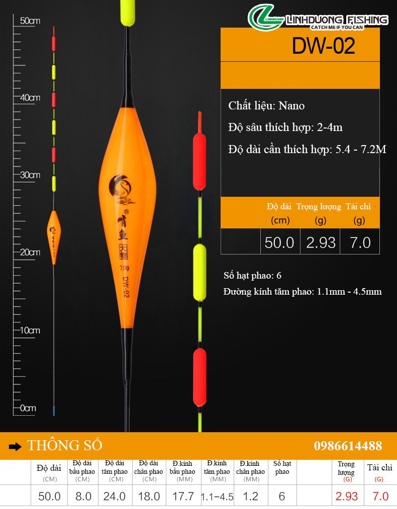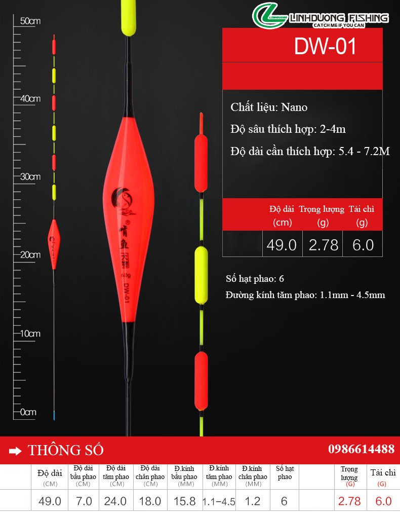 - Được làm tự nguyên liệu Nano tốt nhất, giúp thân phao nhẹ và cứng cáp, ko bị bóp méo..!!